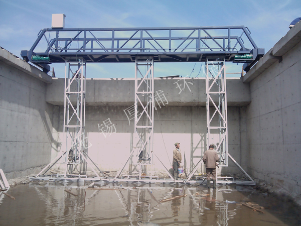 行车式吸泥机又称桥式吸泥机,是给水工程中平流式沉淀池和污水处理工程中二次平流式沉淀池等专用排泥设备。该机可以克服活性污泥比重小含水率高二难以刮集的困难,目前我公司生产的桁架式吸泥机分为斜板(管)虹吸式吸泥机、不带斜板(管)吸泥机和泵吸式吸泥机等三种。